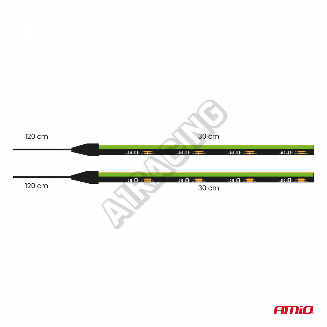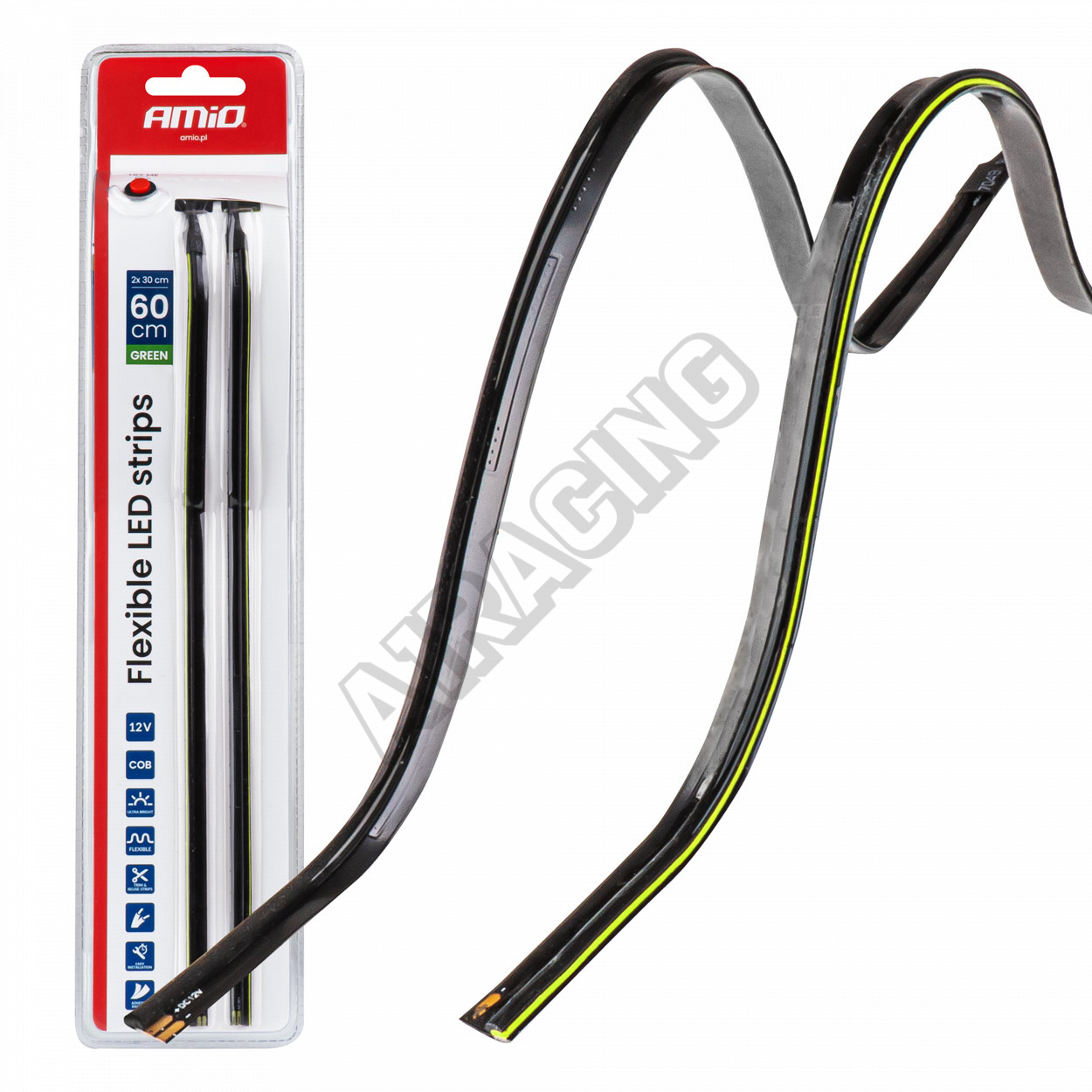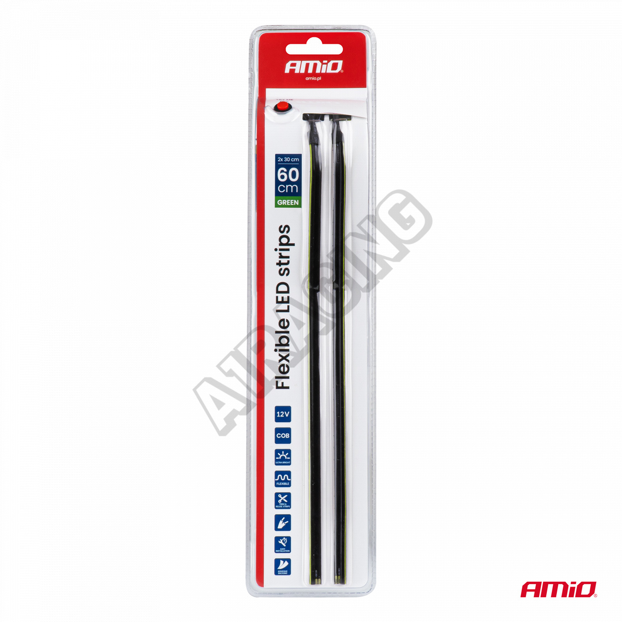 LED COB pásky do auta boční zelené 2x30cm 12V AMIO-04577