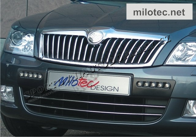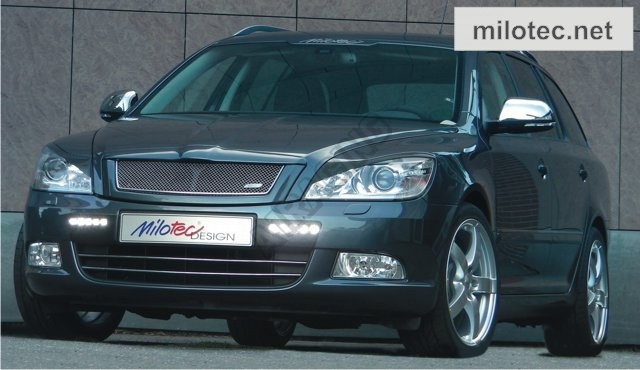 Zástavba LED denních + pozičních světel s krycím rámečkem je určena pro vozy Škoda Octavia II. Lim./Combi. Facelift. Krycí plasty jsou vyrobeny z černého ABS/ASA - tento materiál je UV stabilní.