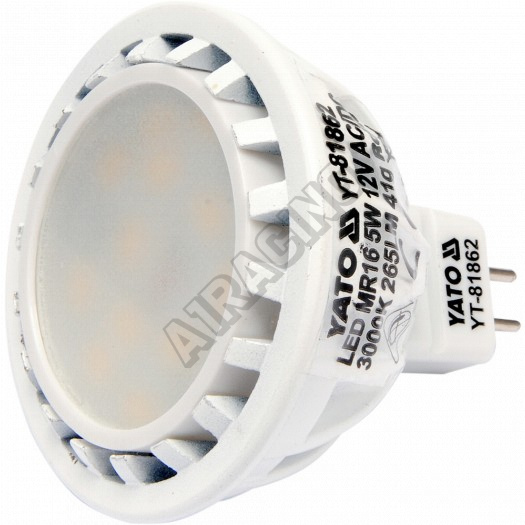 Výrobek má silný světelný tok 265 Lm a teplou bílou barvu (3000K). Práškově lakované hliníkové tělo dokonale odvádí teplo z napájecího zdroje a LED diod. Žárovka je vybavena paticí MR16, odolným polykarbonátovým difuzorem odolným proti mechanickému poškození a účinnými LED diodami.