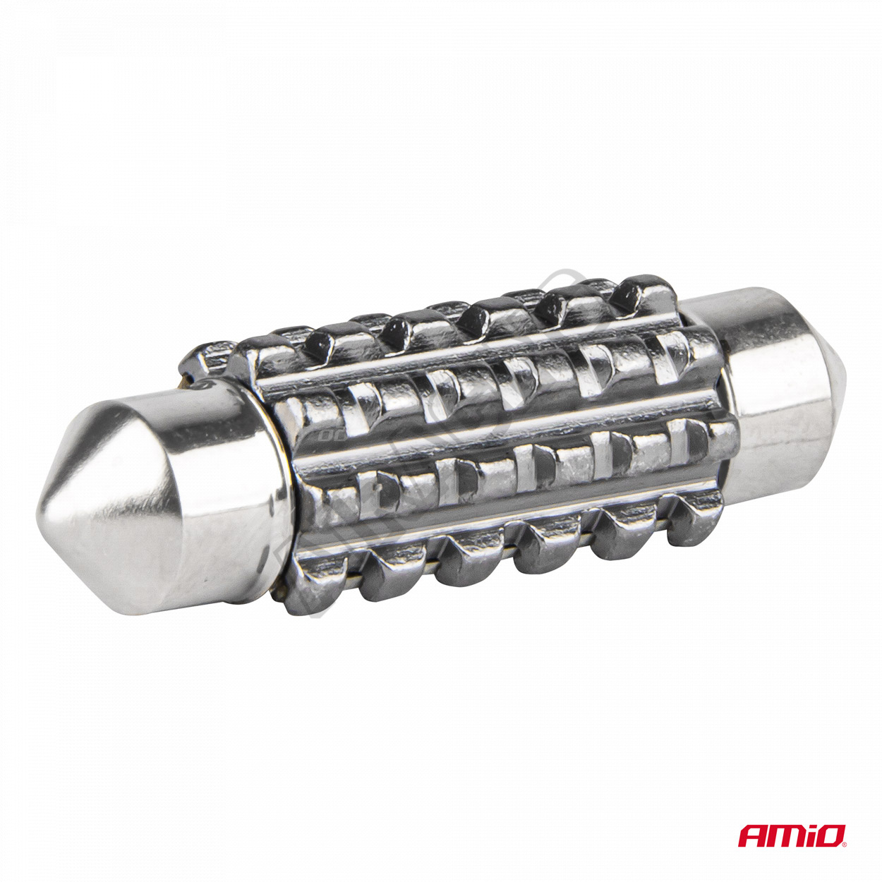 Automobilové LED žárovky značky AMiO jsou moderním řešením využívajícím technologii LED diod. Použité diody emitují bílou barvu světla a jsou bez efektu blikání. Vysoká kvalita provedení zaručuje životnost žárovek až 50 000 hodin a speciální napájecí systém nevyžaduje úpravu elektrické instalace v automobilu, což umožňuje bezproblémovou montáž v tradičních svítidlech, kde byly dříve používány běžné žárovky.