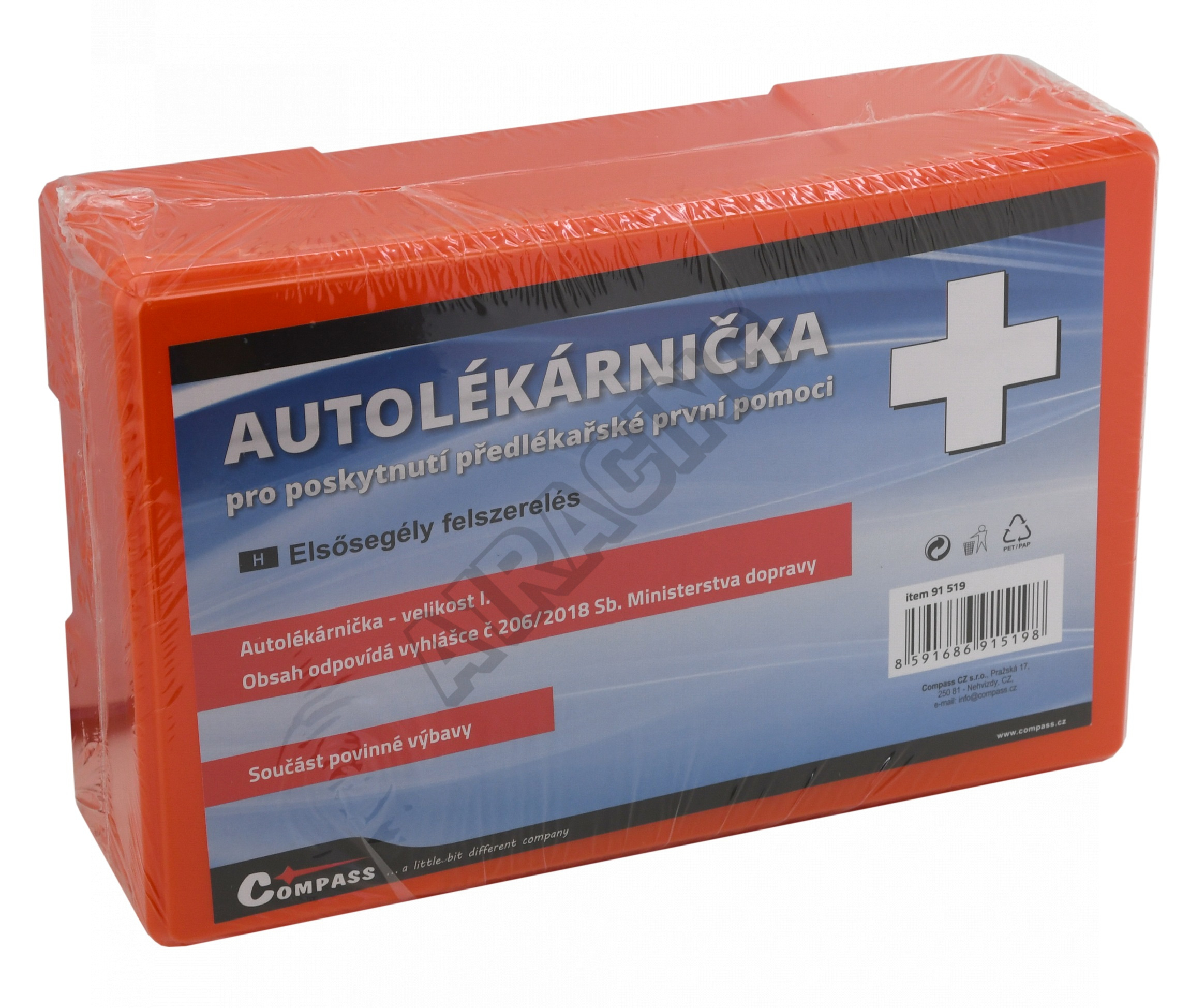 Autolékárnička podle vyhlášky č. 341/2002 Sb., ve znění vyhlášky č. 216/2010 Sb. a vyhlášky 182/2011 Sb. Ministerstva dopravy.