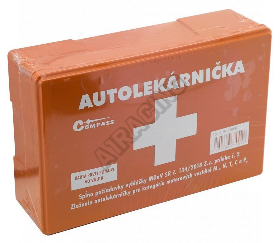 Zloženie autolékárničky pre kategóriu motorových vozidiel M1, N, T, C a Ps. Spĺňa požidavky vyhlášky MZ SR č. 134/2018 Z.z.