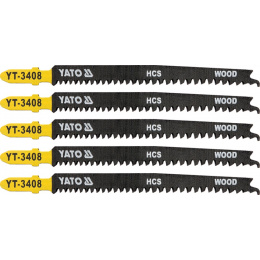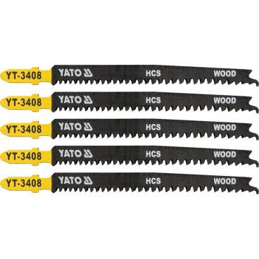 Sada 5 kusů plátků z vysoko uhlíkové oceli HCS pro přímočarou pilu na řezání dřeva. Tyto listy mají speciální velikost zubů pro univerzální řezání tvrdého i měkkého dřeva. Velikost zubů je od jemných po hrubé (od 8 - 13 zubů /1") ve směru od špice k úchytu.