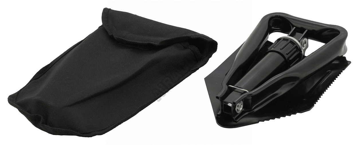Lopatka má rozměry ve složeném stavu 15 x 24 cm a prodávána je spolu s odolným textilním pouzdrem černé barvy, které lze připevnit za opasek.