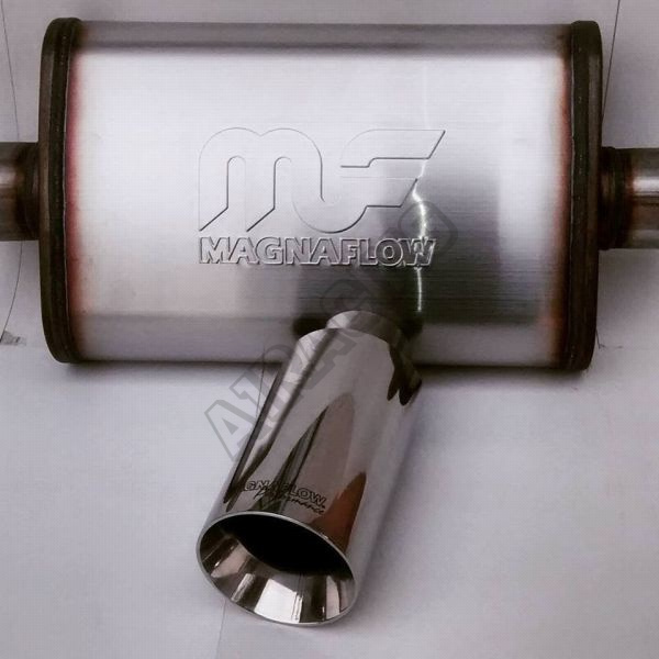 Značková nerezová koncovka amerického výrobce Magnaflow o průměru 87 mm, průměr vstupu pro navaření je 60 mm, délka koncovky 19 cm (na vstupu lze ji pokrátit až na 16 cm), logo výrobce je vyraženo přímo na horní části, pokud máte silnější auto a nechcete riskovat, že levnější koncovka se vám propálí, protože je většinou vyrobena z nejlevnější nerez oceli 304, která je stavěná jen do teploty 350 C, je možná pro vás dobrá volba tato značková nerez koncovka třídy 409, která již odolá velmi vysokým teplotám,