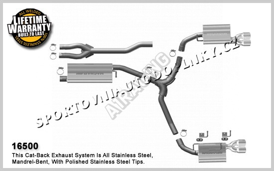 Sportovní výfukové systémy kultovní americké firmy Magnaflow patří spolu s Borlou mezi absolutní špičku ve výrobě sportovních výfuků hlavně v USA. Sportovní konstrukce v nerez provedení s leštěnými koncovkami je přesně stavěna pro daný model auta pro maximální možné navýšení výkonu. Přední úpravci často volí tuto značku jako záruku vysoké kvality, funkčnosti i nádherného zvuku. Naše firma je přímo autorizovaným prodejcem těchto výfuků pro ČR a proto vám můžeme poskytnout plnou záruku a maximální pomoc při výběru správného výfuku,  Některé výfuky držíme přímo skladem a je možné je vidět na naší prodejně v Ostravě. Pokud daný výfuk je skladem v Evropě, u nás jej máme do 10 dnů, pokud je výfuk jen v USA, doba dodání kontejnerem je 2-3 měsíce, letecky 10-14 dnů s  přirážkou od 6000,- Kč bez DPH podle velikosti a váhy výfuku. Nahoře vedle hlavní fotky najdete v souborech často montážní listy, fotky i videa daného modelu auta.