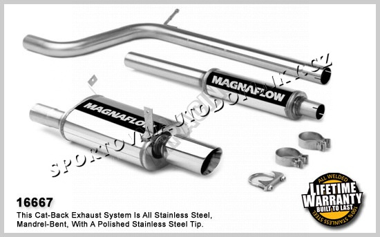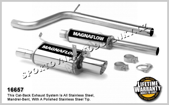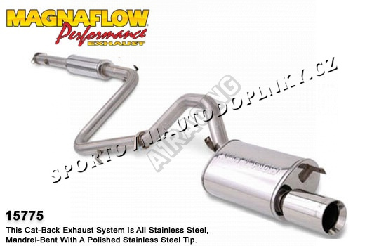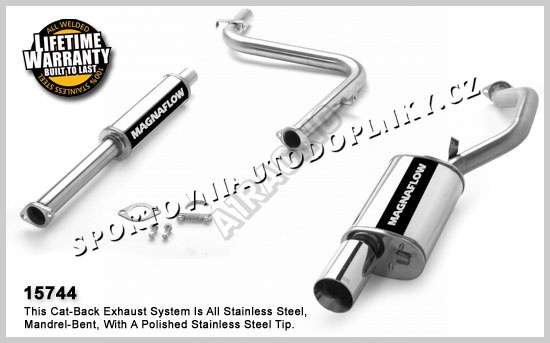 Sportovní výfukové systémy kultovní americké firmy Magnaflow patří spolu s Borlou mezi absolutní špičku ve výrobě sportovních výfuků hlavně v USA. Sportovní konstrukce v nerez provedení s leštěnými koncovkami je přesně stavěna pro daný model auta pro maximální možné navýšení výkonu. Přední úpravci často volí tuto značku jako záruku vysoké kvality, funkčnosti i nádherného zvuku. Naše firma je přímo autorizovaným prodejcem těchto výfuků pro ČRa proto vám můžeme poskytnout plnou záruku a maximální pomoc při výběru správného výfuku, Některé výfuky držíme přímo skladem a je možné je vidět na naší prodejně v Ostravě. Pokud daný výfuk je skladem v Evropě, u nás jej máme do 10 dnů, pokud je výfuk jen v USA, doba dodání kontejnerem je 2-3 měsíce, letecky 10-14 dnů s přirážkou od 6000,- Kč bez DPH podle velikosti a váhy výfuku. Nahoře vedle hlavní fotky najdete v souborech často montážní listy, fotky i videa daného modelu auta.