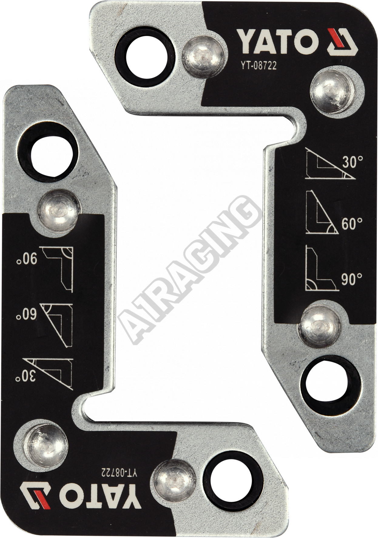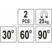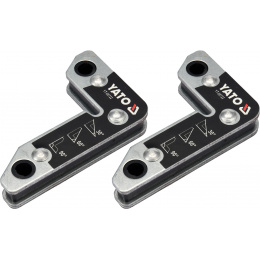 Sada 2 magnetických úhelníků používaných pro svařování a montáž různých prvků, např. plechů, upevňovacích prvků, plochých tyčí, profilů, trubek atd.