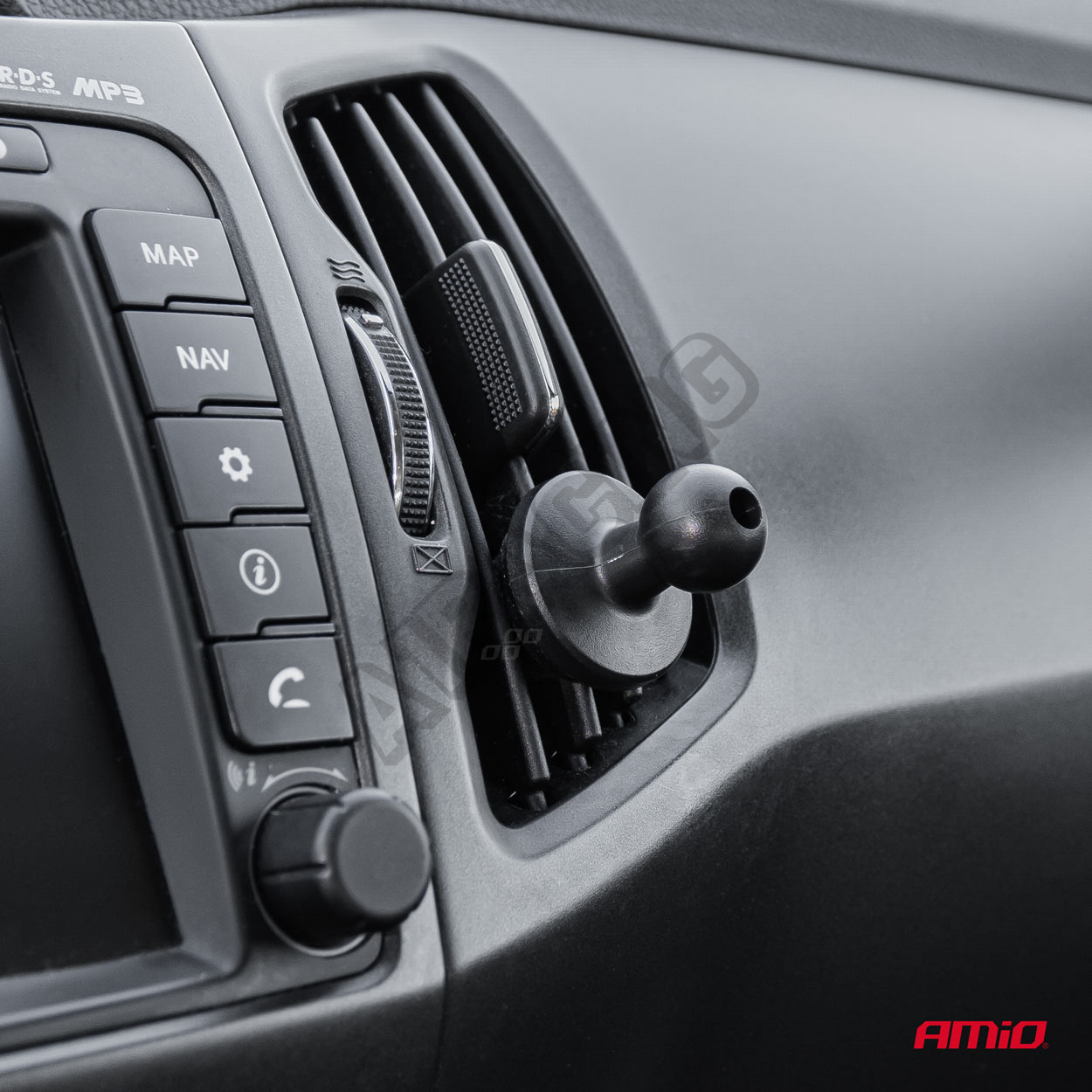 • Snadná a trvanlivá montáž. Držák je velmi snadno montovatelný do ventilační mřížky vozidla.