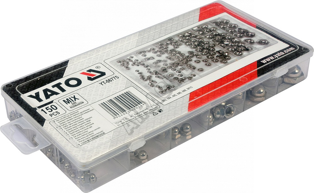 Sada 150 ks metrických kloubokových matic. Vše je přehledně uspořádáno v kompaktním plastovém kufřík