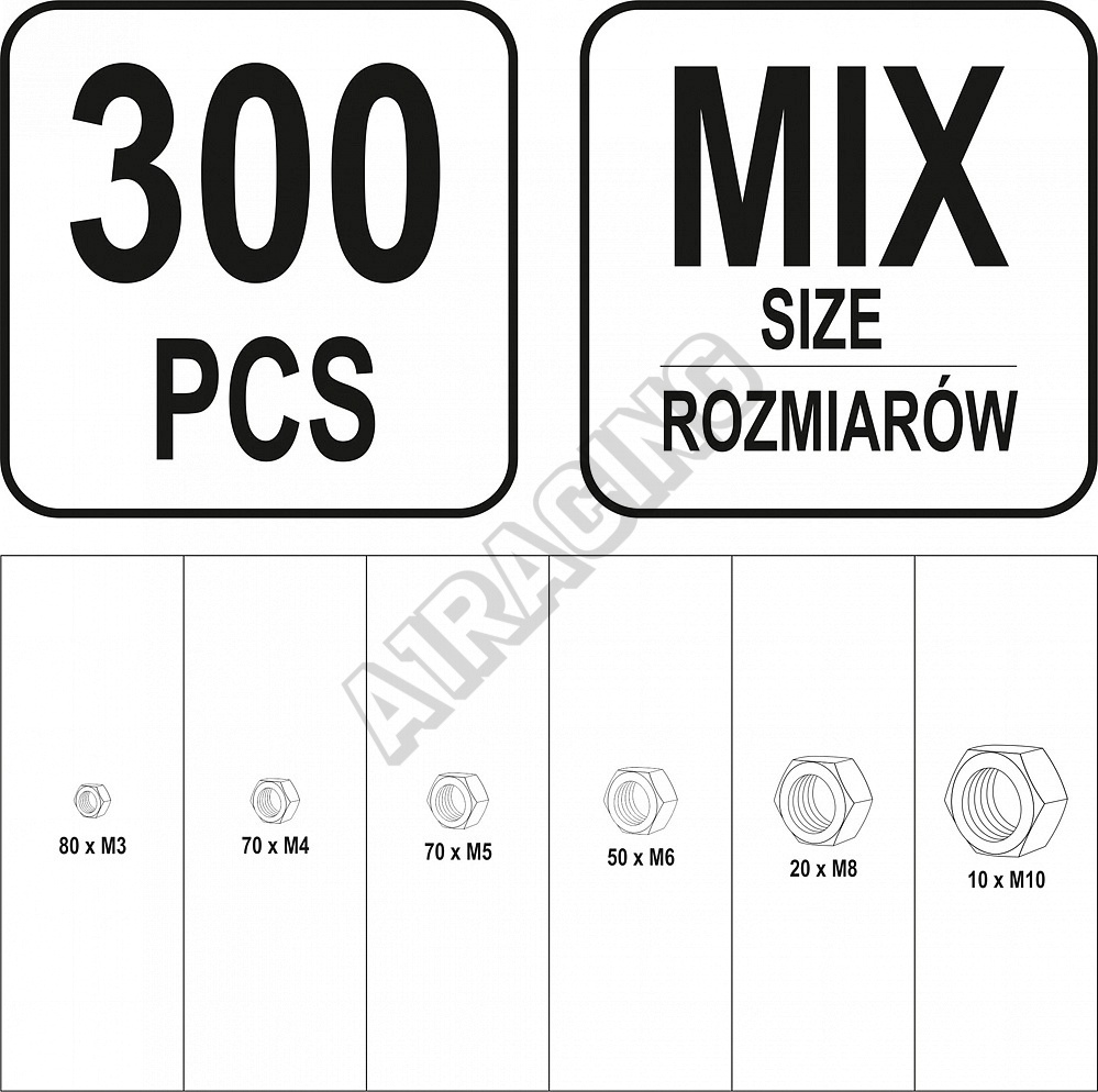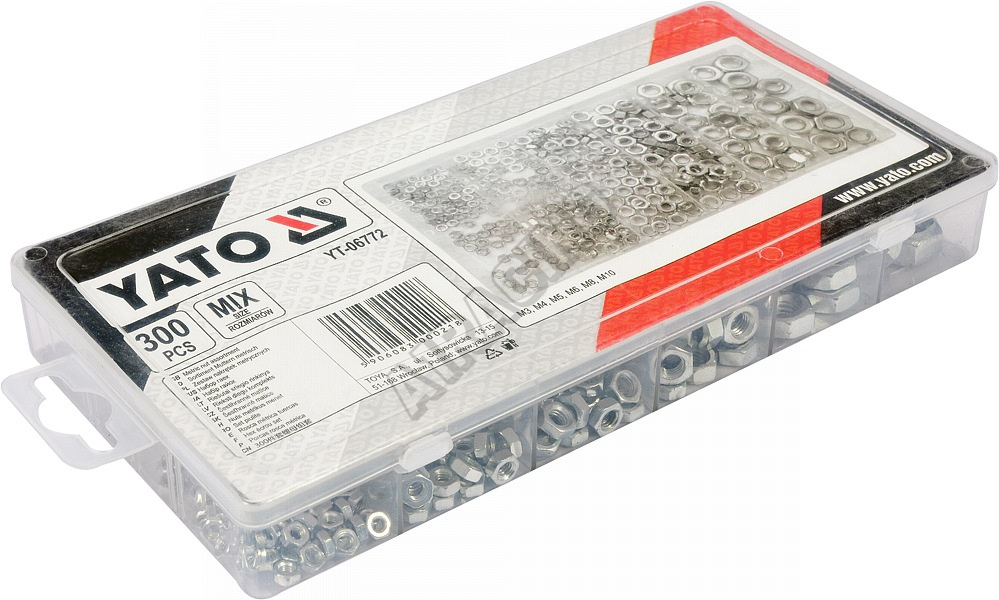 Sada 300 ks kvalitních matic s metrickým M3 - M10 závitem. Vše je přehledně uspořádáno v kompaktním