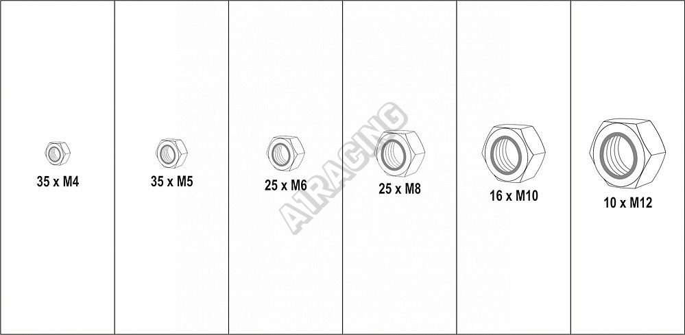 Sada 146 ks kvalitních pojistných matic s nylonem.