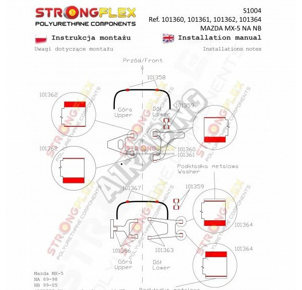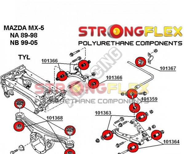 Mazda MX5 1989-98 StrongFlex Sport sestava silentbloků jen pro zadní nápravu 20 ks obsahuje: