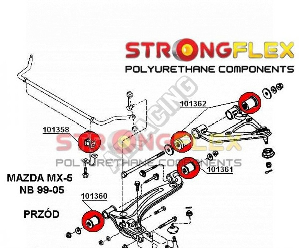 Mazda MX5 1999-05 StrongFlex sestava silentbloků jen pro přední nápravu 10 ks obsahuje: