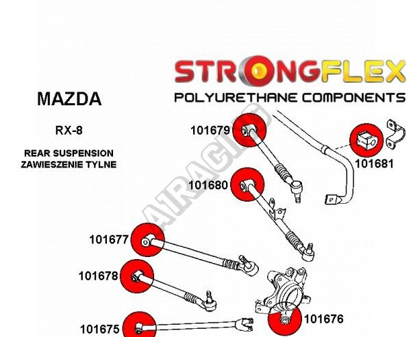 Mazda RX8 StrongFlex Sport sestava silentbloků jen pro zadní nápravu 14 ks obsahuje: