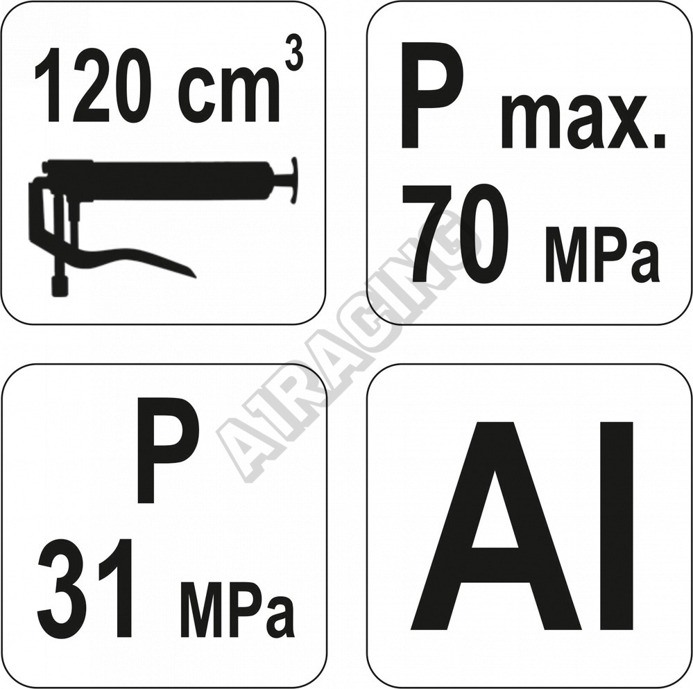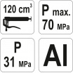 Maznice je opatřena kovovou vývodkou a dosahuje vytlačovacího tlaku 70 MPa (310bar).