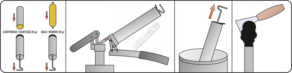 Maznice páková, pro klasické kartuše 400 g, nebo PVC sáček 500 ml.