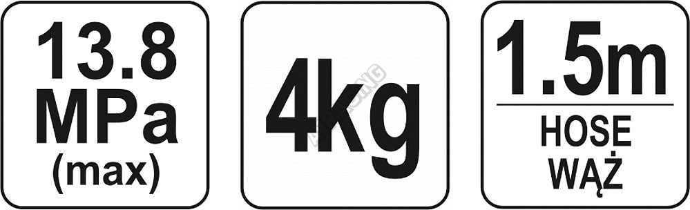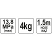 Hadice délky 1,5 m a výtlačný tlak 13,8 MPa.
