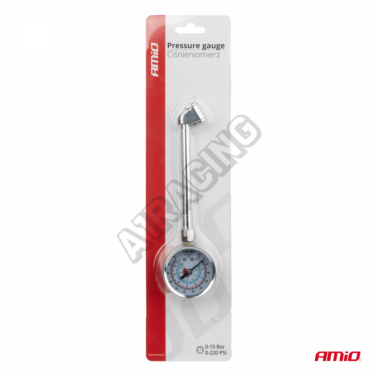 Profesionální celokovový pneuměřič, rozsah měření až 0 - 15Atm, vhodné pro měření tlaku v pneumatikách. Charakteristika: - Profesionální celokovový pneuměřič - Rozsah: 0 - 15 Atm - Materiál: celokovový/ plast - Vhodné pro měření tlaku v pneumatikách až do hodnoty 15 Atm