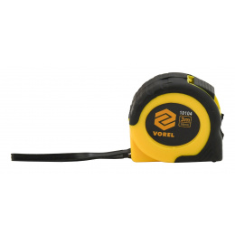 Svinovací metr 3 m dlouhý a 16 mm široký zakončený pohyblivým háčkem. Pouzdro je vyrobeno z plastu, vyztuženo gumovými podložkami a aretačním knoflíkem.