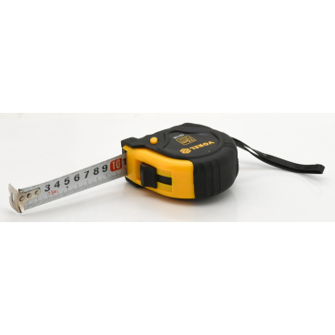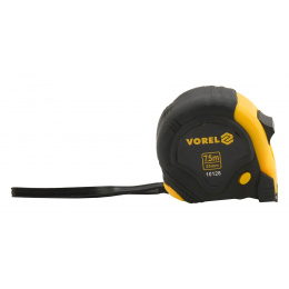 Svinovací metr 7,5 m dlouhý a 25 mm široký zakončený pohyblivým háčkem. Pouzdro je vyrobeno z plastu, vyztuženo gumovými podložkami a aretačním knoflíkem.
