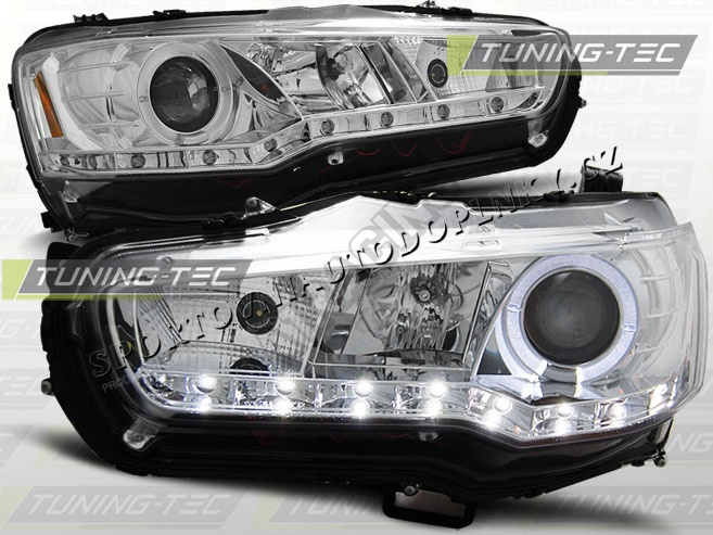 MITSUBISHI LANCER 2008-11 PŘEDNÍ ČÍRÁ SVĚTLA DAYLIGHT LED CHROME