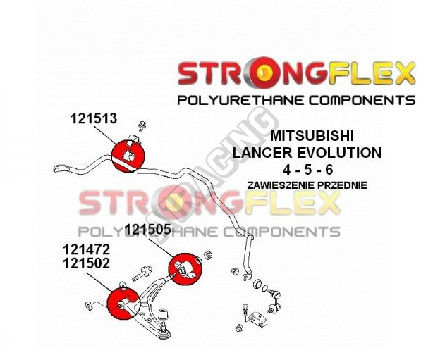 0 recenze produktu Mitsubishi Lancer Evolution Evo IV-V-VI StrongFlex sestava silentbloků jen pro přední nápravu 6 ks