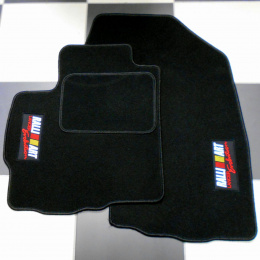 Kvalitní černé textilní autokoberce pro Mitsubishi Lancer s logem sportovní divize Ralliart. Pasují přesně pro tento model. Spodní část koberců má drhnoucí smirkovou úpravu, aby autokoberce se neposunovali po podlaze interiéru.