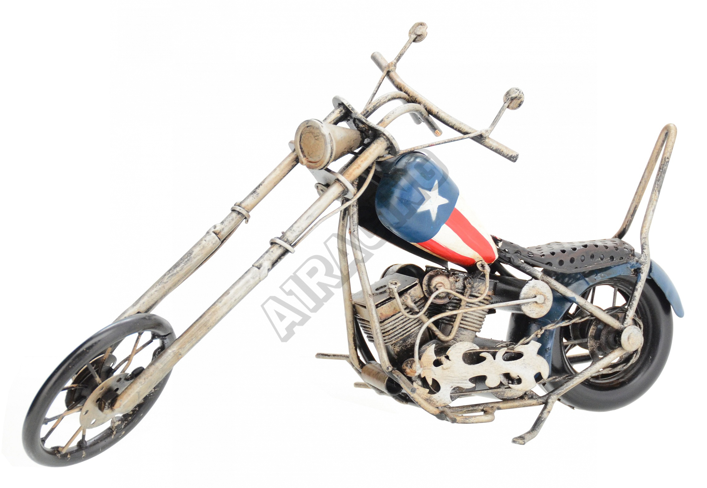 Model je zhotoven z celokovu s nádrží v barvách ameriky, je tvarován podle reálné předlohy se vzhledem odpovídajícím starým neudržovaným motocyklům.