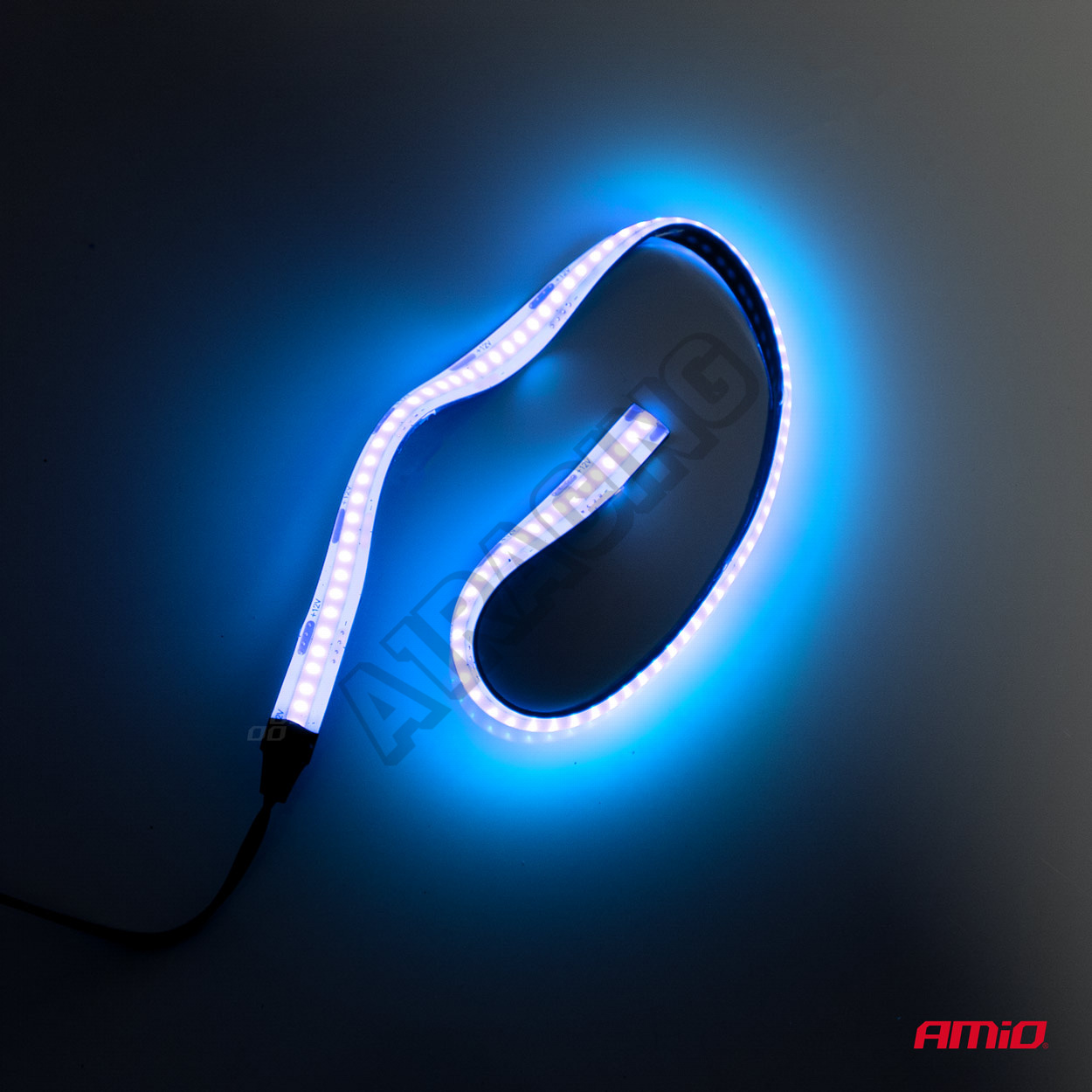 Flexibilní LED pásky vyrobené v technologii COB, určené k instalaci do vozidel 12V. Každá sada obsahuje dva pásky o délce 30 cm, vyzařující intenzivní modré světlo. Konstrukce typu Flexible umožňuje snadné přizpůsobení tvaru montážní plochy. Produkt je vybaven testovací funkcí "vyzkoušej mě", která usnadňuje prezentaci jeho fungování na prodejním místě.