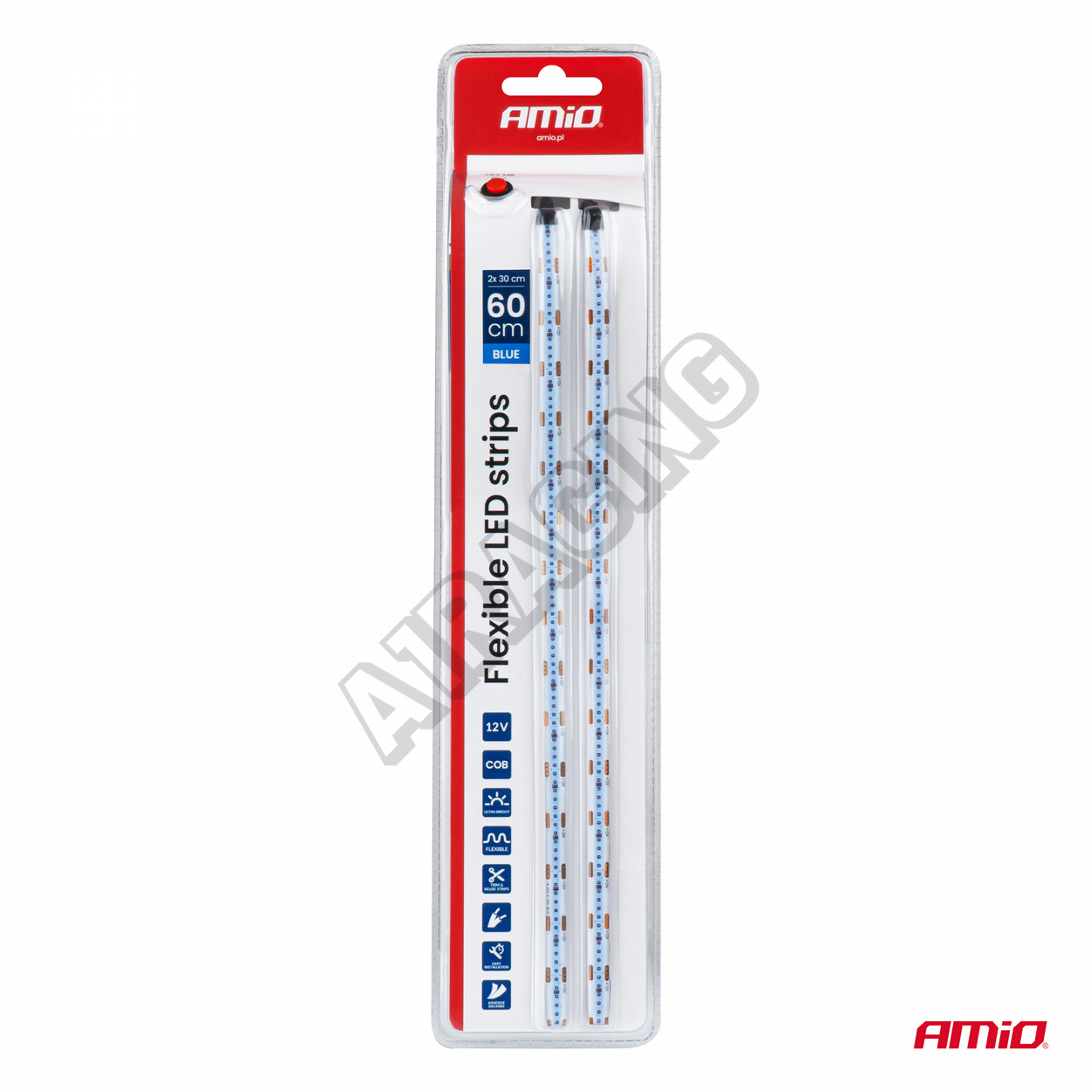 Modré LED COB pásky do auta 2x30cm 12V AMIO-04571
