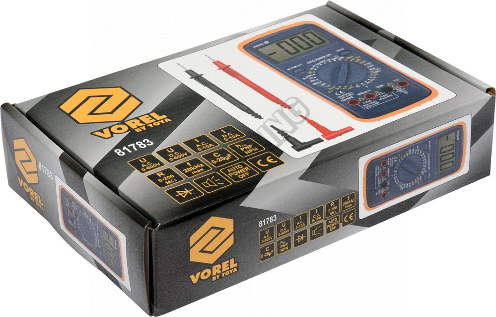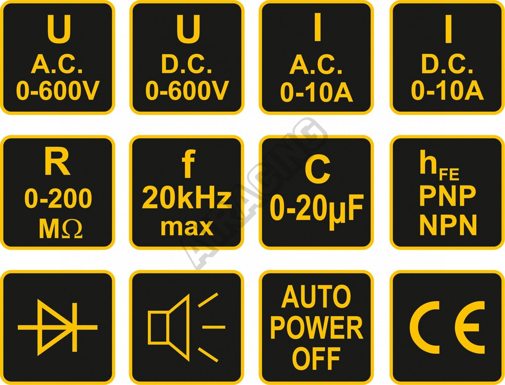 Tento měřák umožňuje měření střídavého a stejnosměrného napětí, proudu i odporu, kapacity, frekvence a teploty. Navíc je tento multimetr vybaven testovacím slotem pro kontrolu tranzistorů a zároveň umí testovat i diody. Mezi jednotlivými typy měření se přepíná pomocí otočného voliče, kde lze rovněž nastavit požadovaný rozsah u jednotlivých veličin.