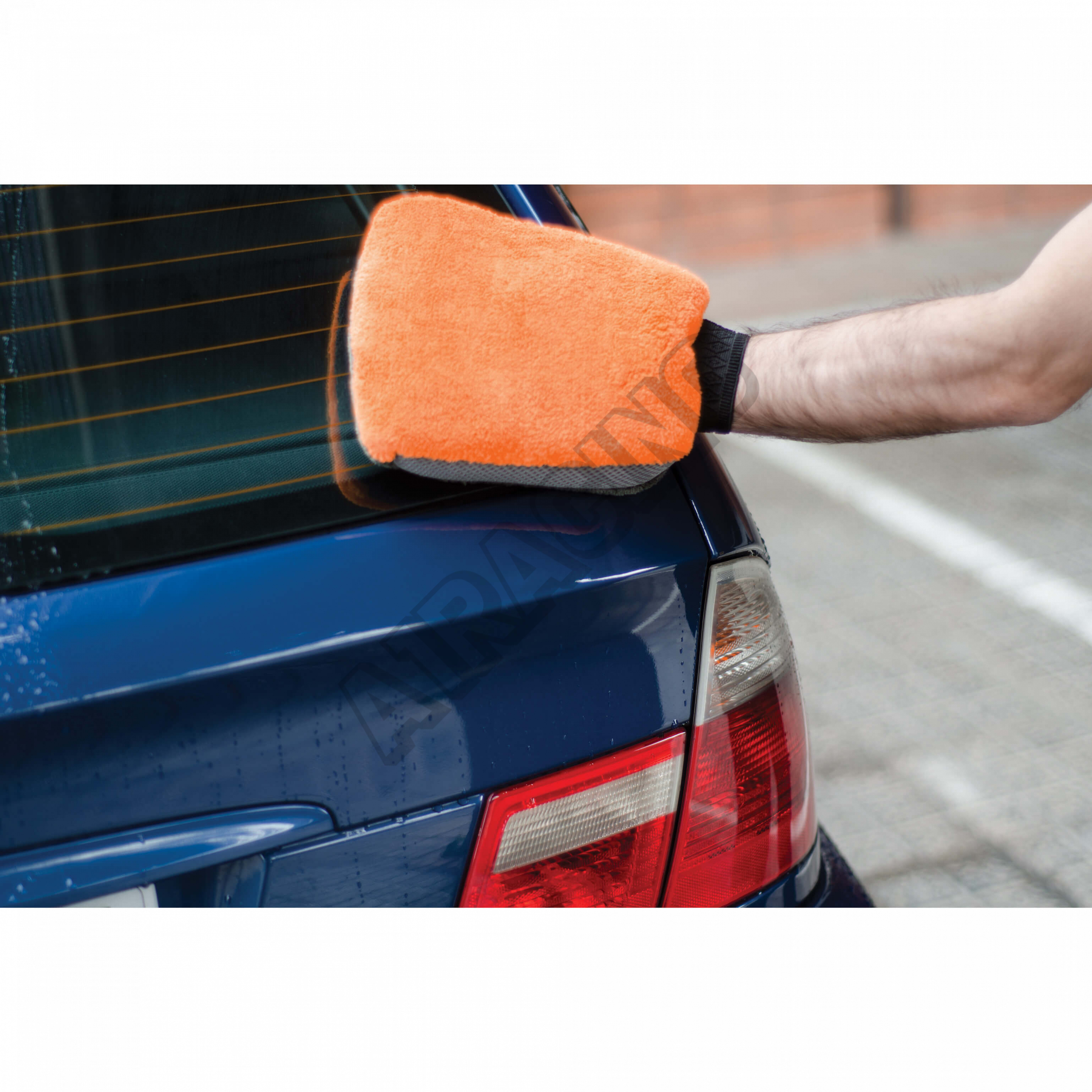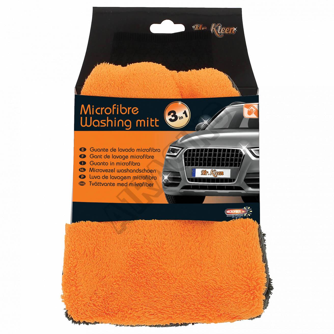 Kvalitní mycí rukavice z mikrovlákna společnosti MR. Kleen je určená pro mokré i suché čistění. Absorbuje více vody než běžné houby. Zajistí i rovnoměrné nanesení šamponu. Je ideální také na stírání prachu - hrubé vlákna působí jako magnet na prach. Pojme několikanásobně více prachu než běžná prachovka. Oranžová strana mikrovláken je určena pro karoserii vozidla na mytí i leštění. Šedá strana slouží k čištění kol a větší špíny. Boční hrubší strany jsou pro čištění obtížně odstranitelné nečistoty jako je třeba hmyz. Rukavice se může prát a opět znovu dokola použít.