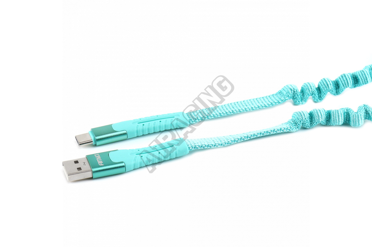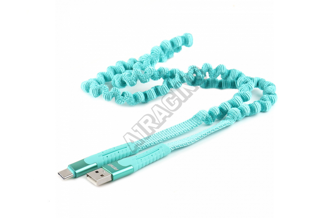 Nabíjecí kabel pružinový USB+USB-C 120cm FullLINK UC-14 Univerzální provedení pro všechny zařízení