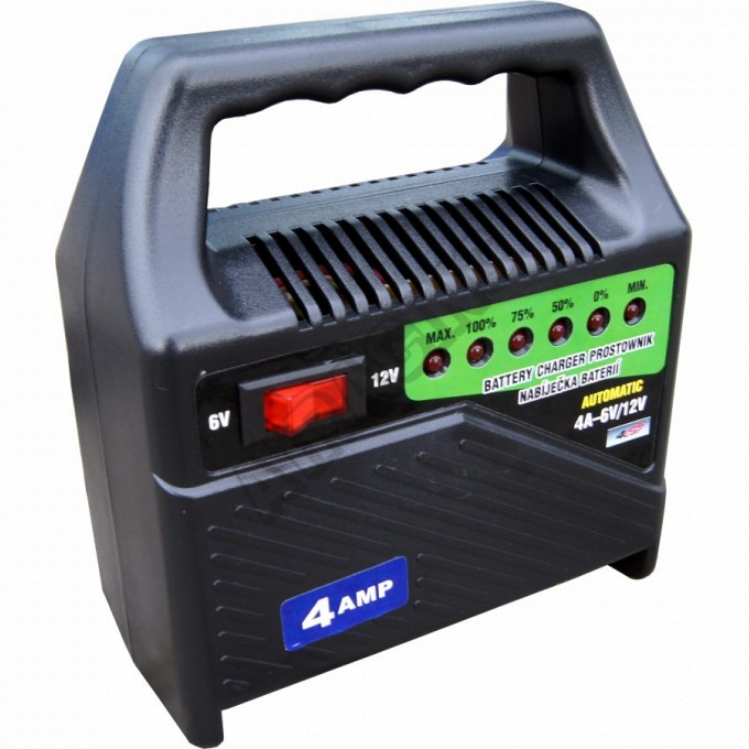 Nabíječka autobaterií: Přenosná, automatická nabíječka 6/12V 4A.Určena k nabíjení olověných akumulátorů.Napájení 220V.LED indikace.