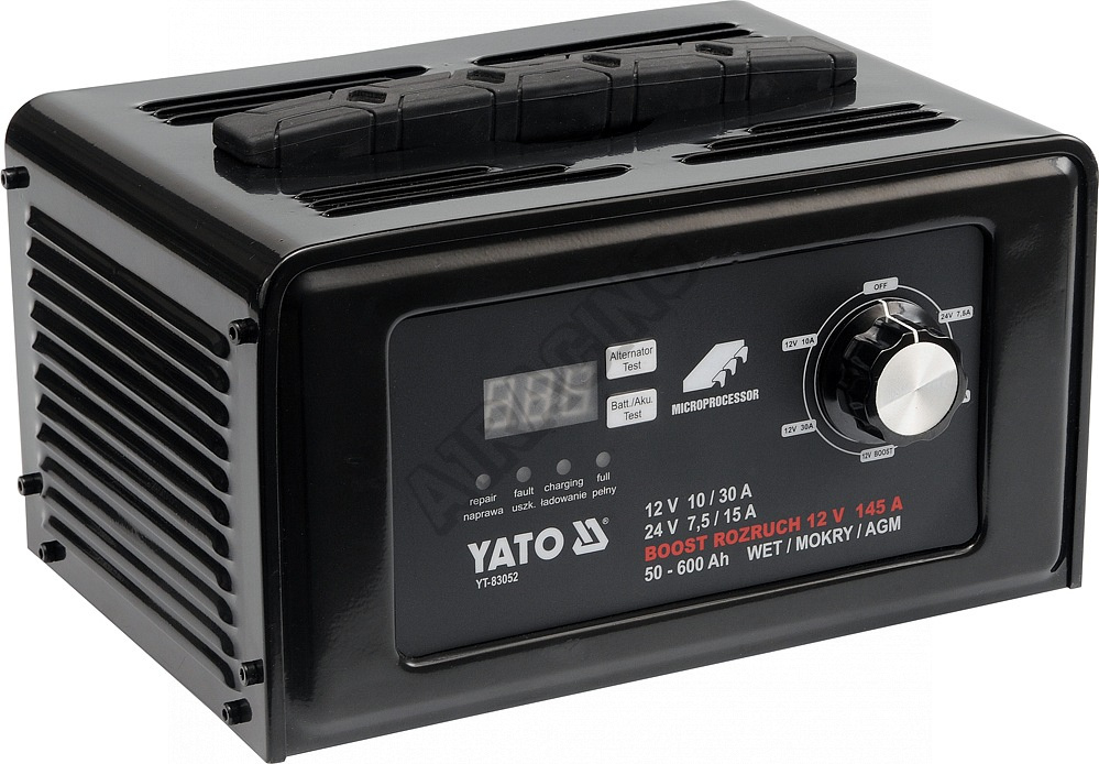 Mikroprocesorová nabíječka akumulátorů 12/24V s napájením 230V s funkcí Boost (Starter), umožňující nastartovat vozidlo s vybitou baterií tak, jako by bylo startováno pomocí startovacích kabelů z jiného vozidla.