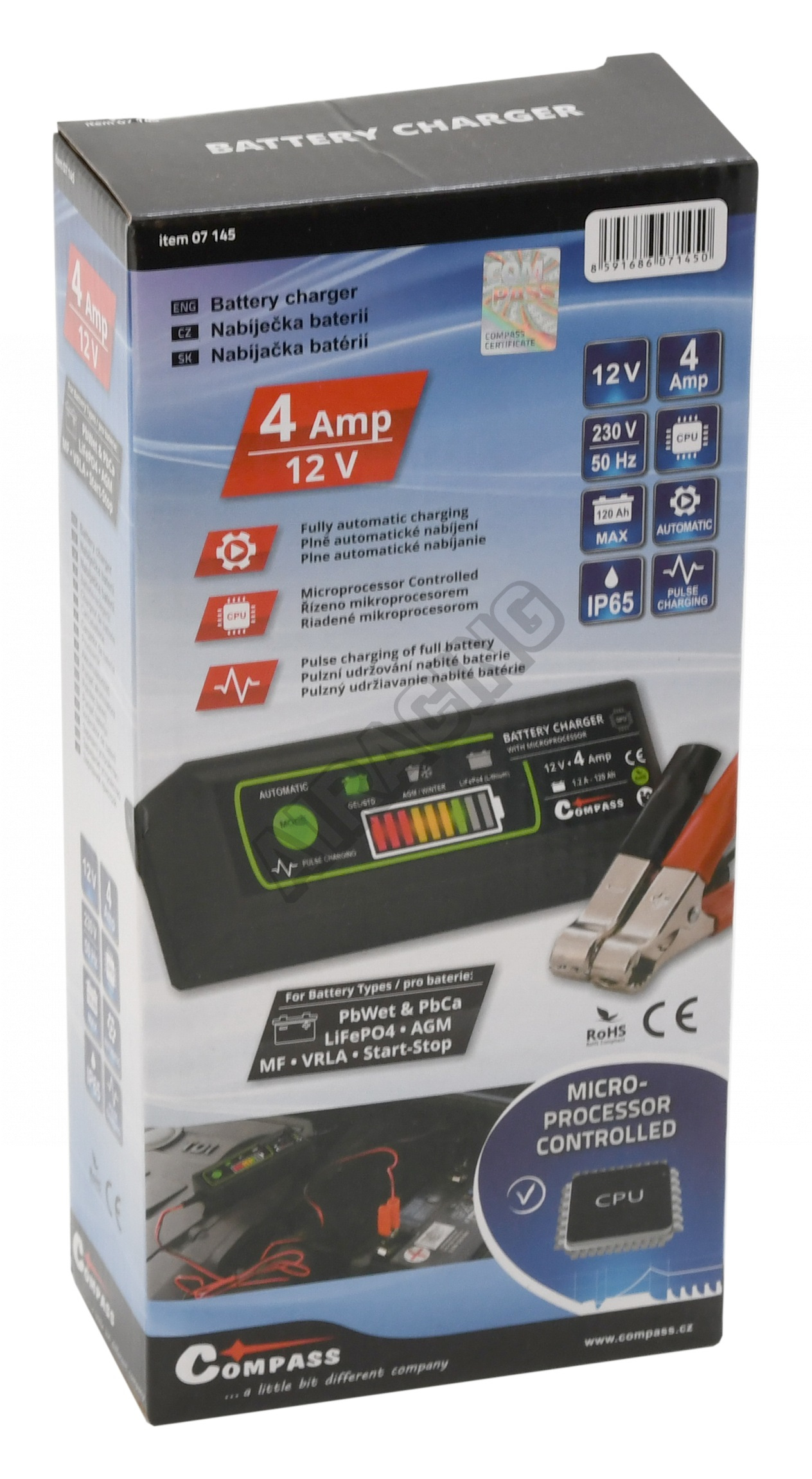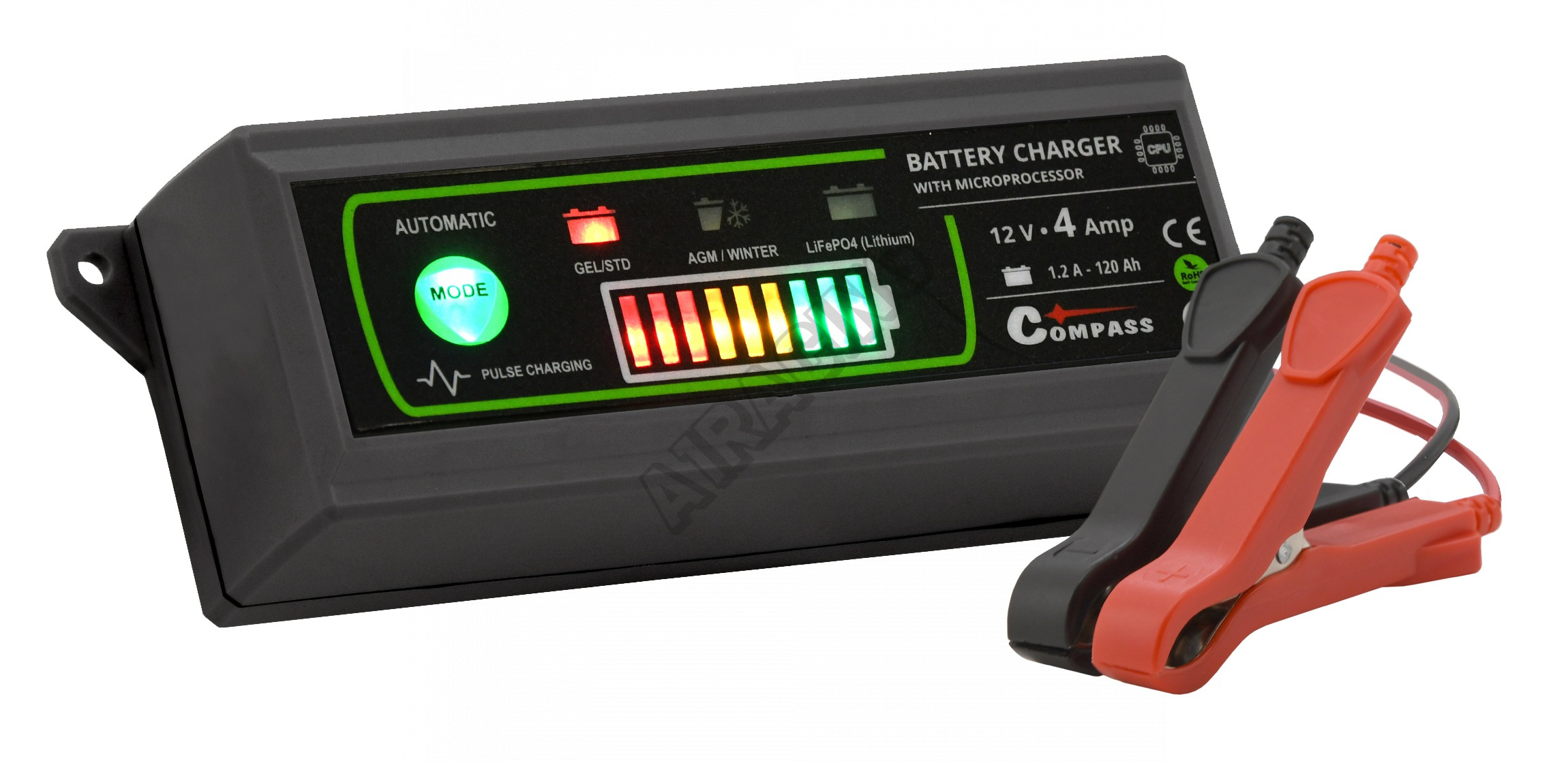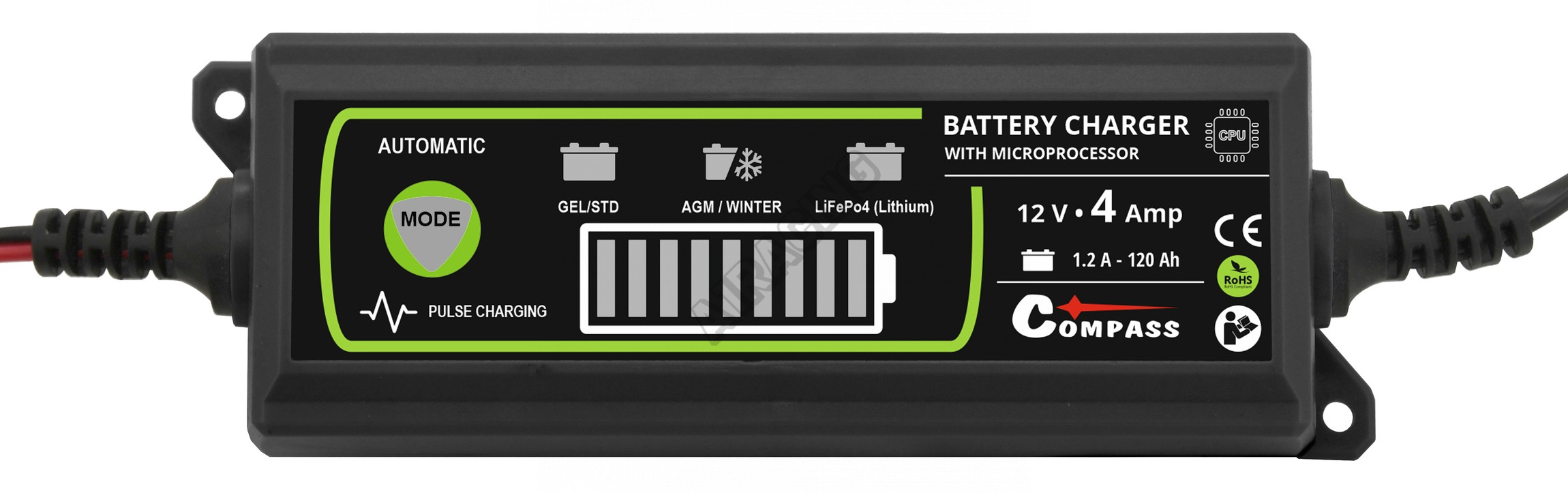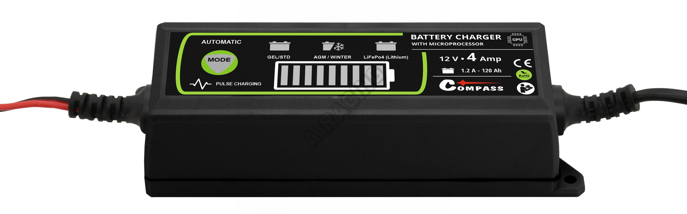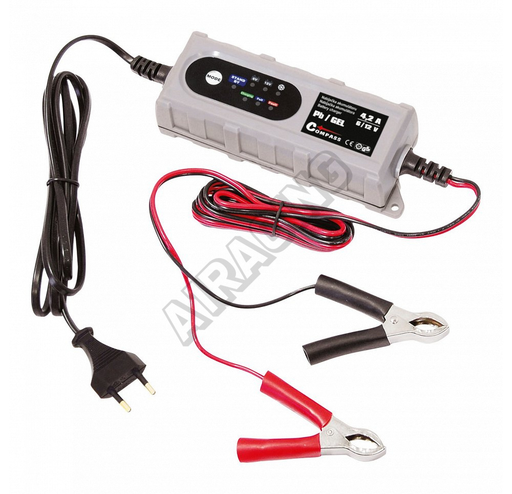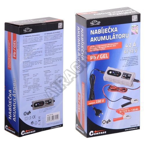 Stabilní nabíjecí proud 4,2 A, vysoká účinnost (85%). Kompaktní velikost umožňuje ideální využití doma, na cestě i v garáži. Nabíjí všechny typy 6/12V olověných (Pb) akumulátorů - bezúdržbové GEL (gelové), AGM, MF, VRLA, údržbové PbWet a PbCa. Pulzní dobíjení prodlužuje životnost baterie a udržuje ji v lepší kondici.