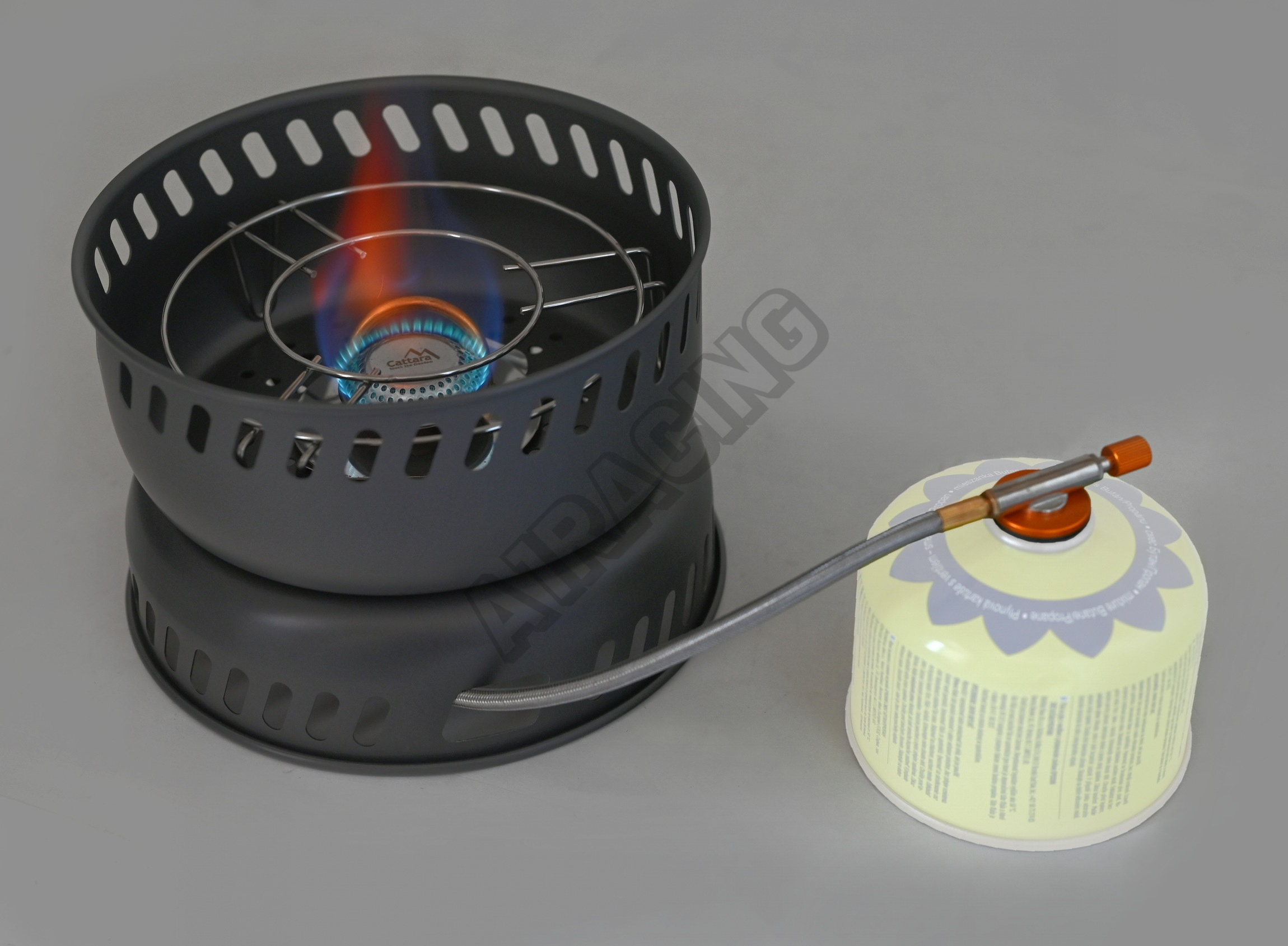 Samotný hořák je opatřený hadicí s ocelovým opletem délky 60 cm, zakončený regulátorem pro pohodlné nastavení průtoku plynu, pro přesné nastavení velikosti plamene. Regulátor je opatřen těsněním o rozměrech 30 x 2 mm a závitem 7/16" pro našroubování ke kartuši s propan-butanem, která musí být vyrobena dle EN 417 a opatřena samotěsnícím ventilem s připojovacím závitem 7/16“. Hořák díky své konstrukci s předehřívačem plynu umožňuje použití při nízkých teplotách a ve vysokých nadmořských výškách. Pro zapálení hořáku je v sadě přiložen praktický piezo zapalovač.