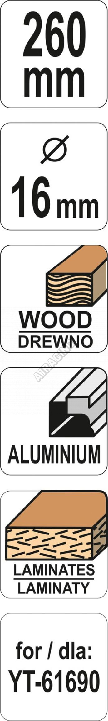 Čepel s rozměry 260 x 16 mm určená pro úpravy materiálů, jakými je sádra, dřevo, neželezné kovy, kompozitní materiály a plasty.