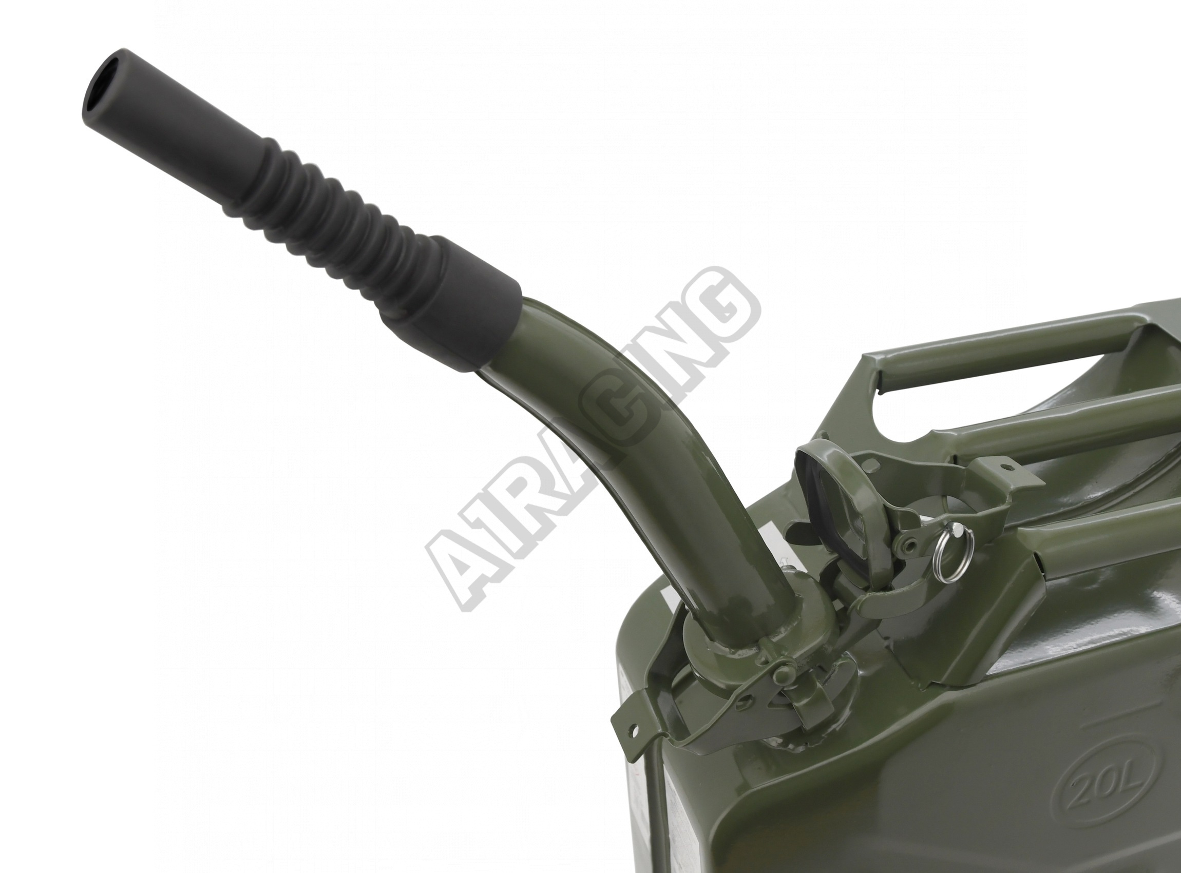 Kovová nálevka pro kovové kanystry na pohonné hmoty.