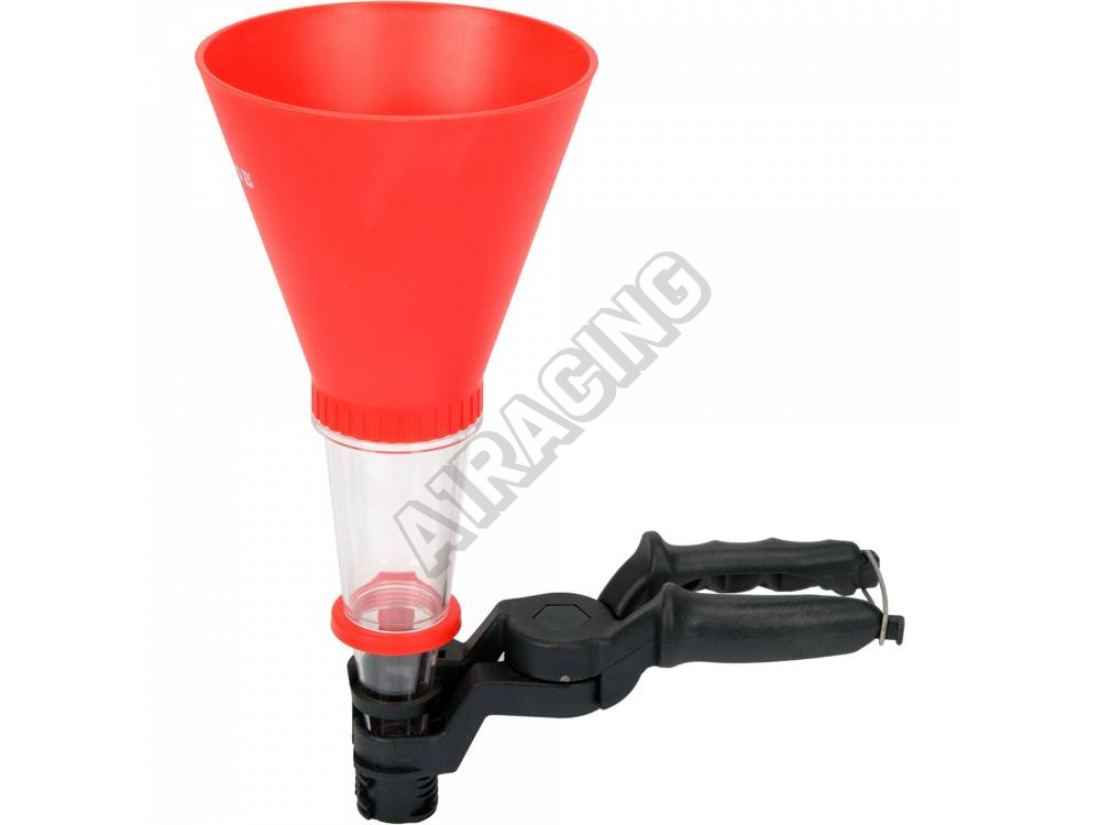 Praktická nálevka s držadlem a nastavitelnou svorkou.