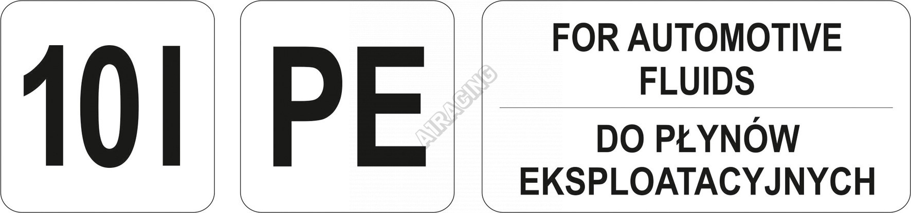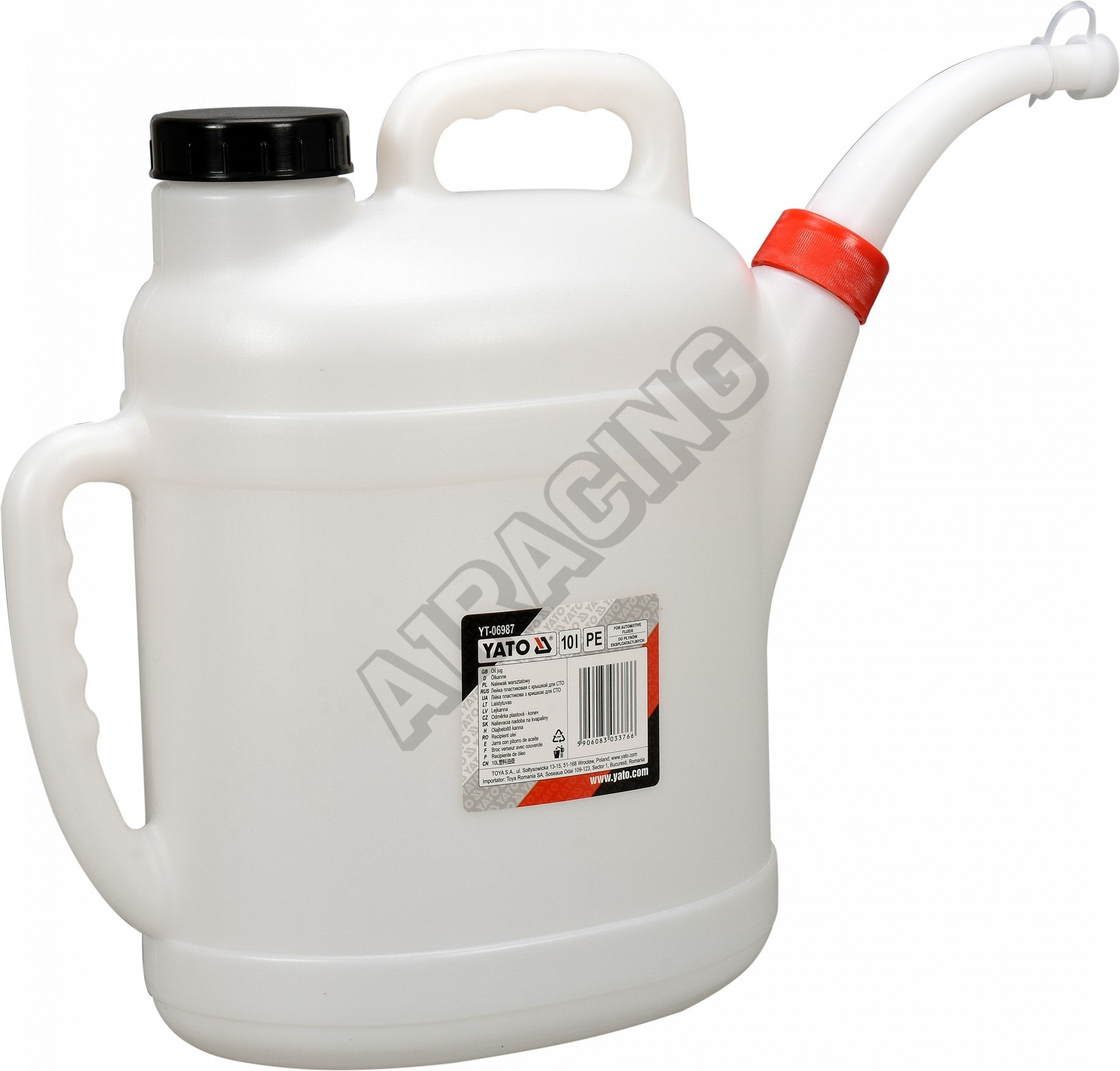 Zhotovení z odolného PE materiálu odolného vůči technickým kapalinám, opatřená šroubovacím víkem a ohebnou nálevkou.
