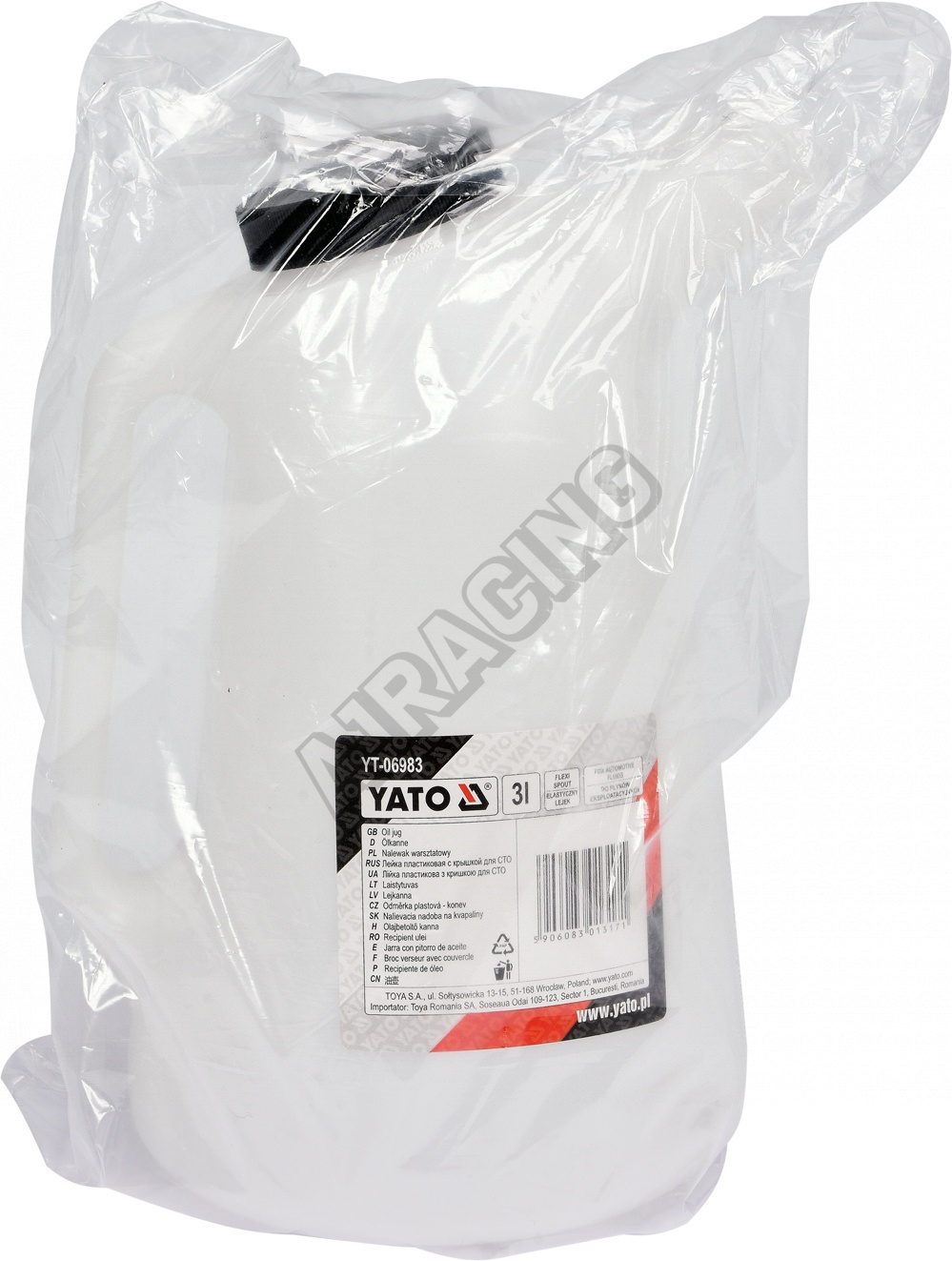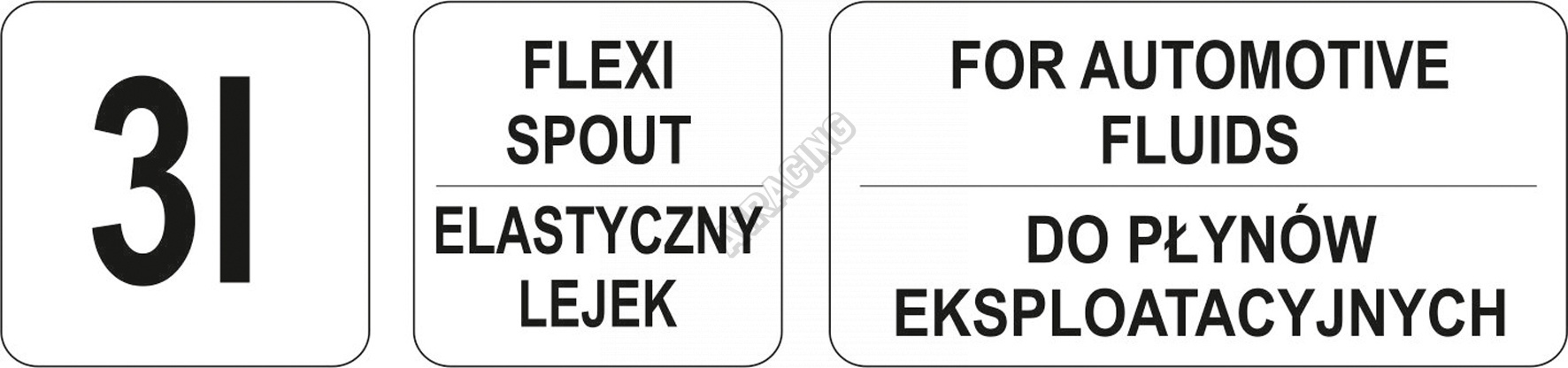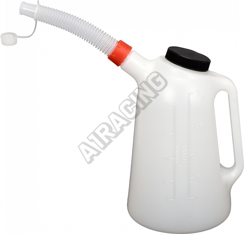 Zhotovení z odolného PE materiálu odolného vůči technickým kapalinám, opatřená šroubovacím víkem a ohebnou nálevkou.