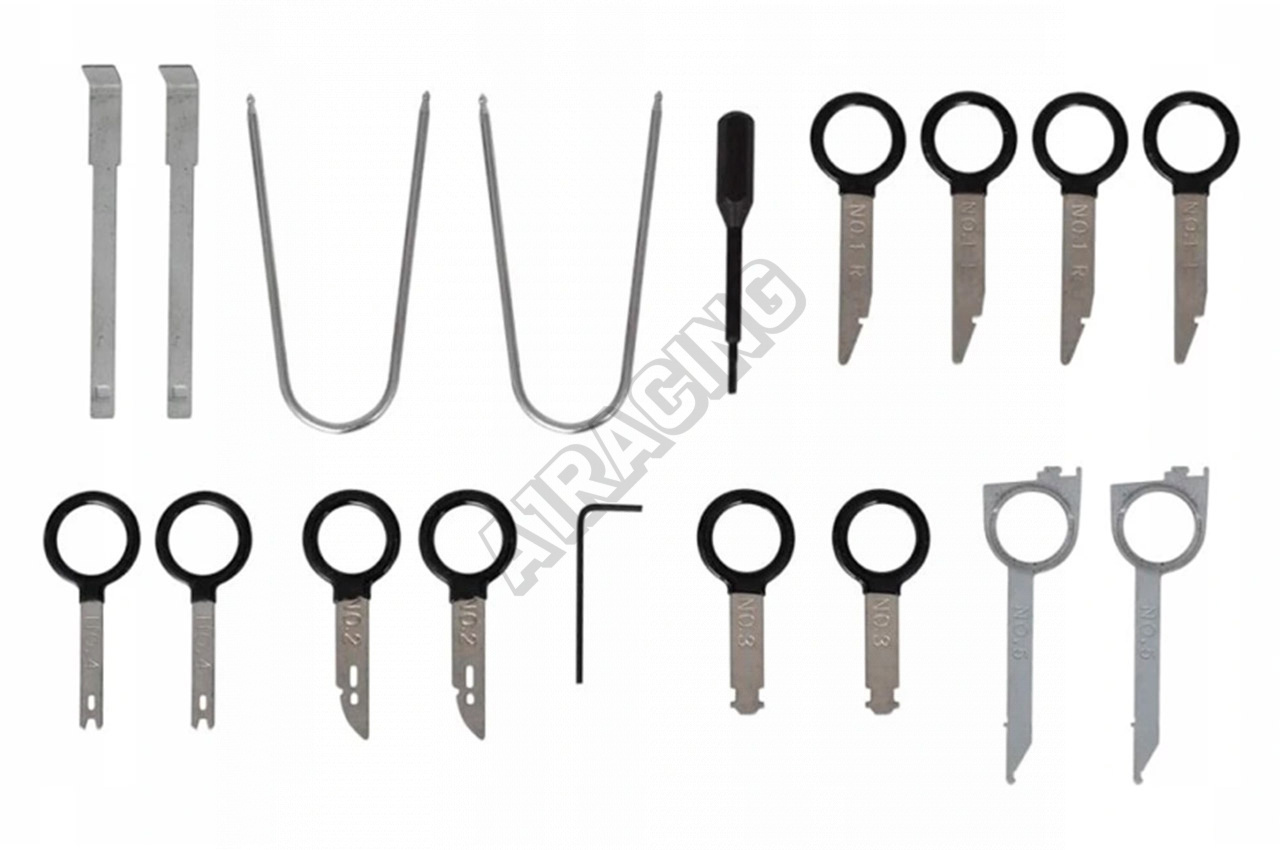 Nářadí pro demontáž autorádií Kompletní víceúčelová 20-ti dílná sada. Použití: Rádio / navigaci s