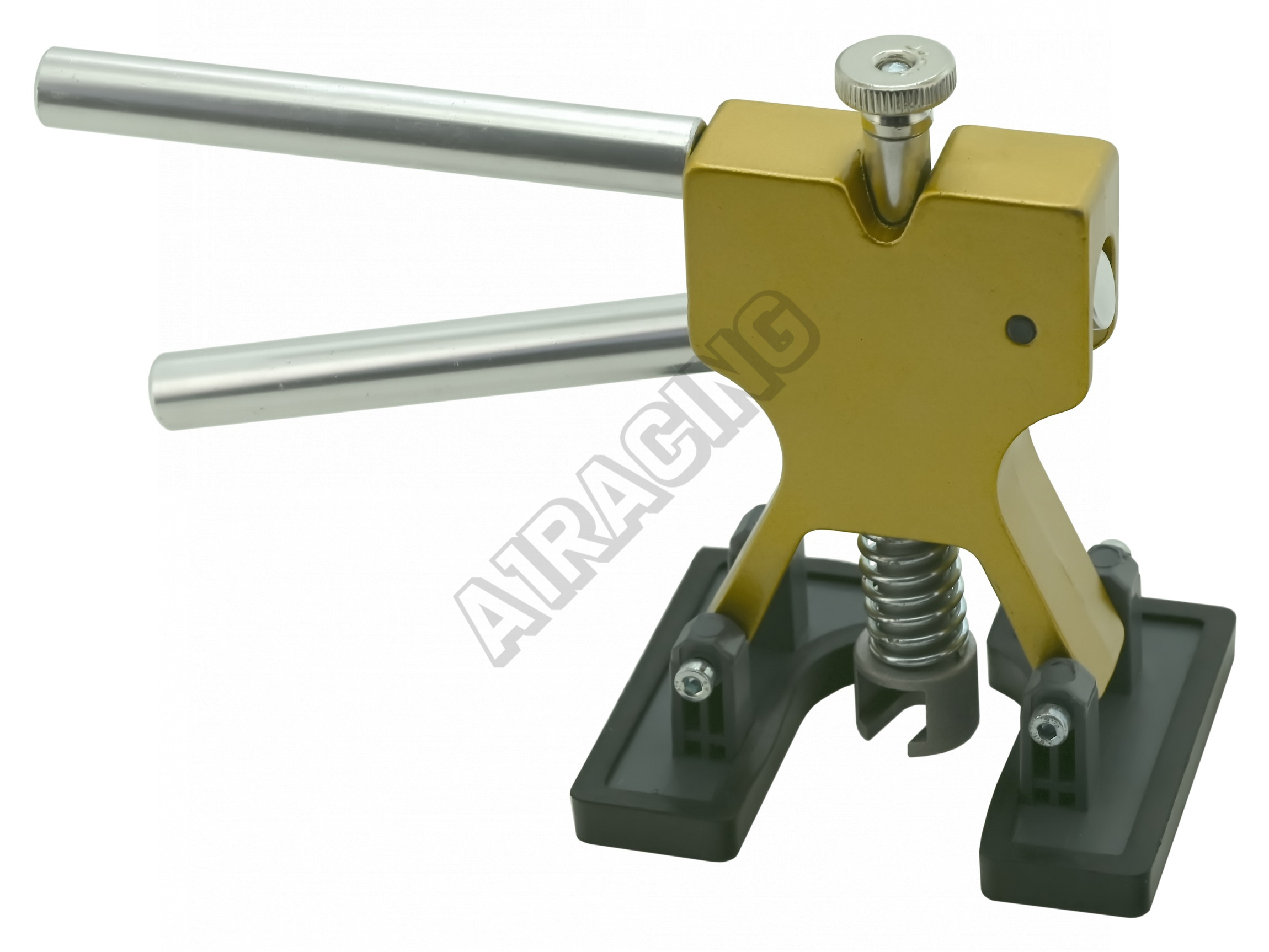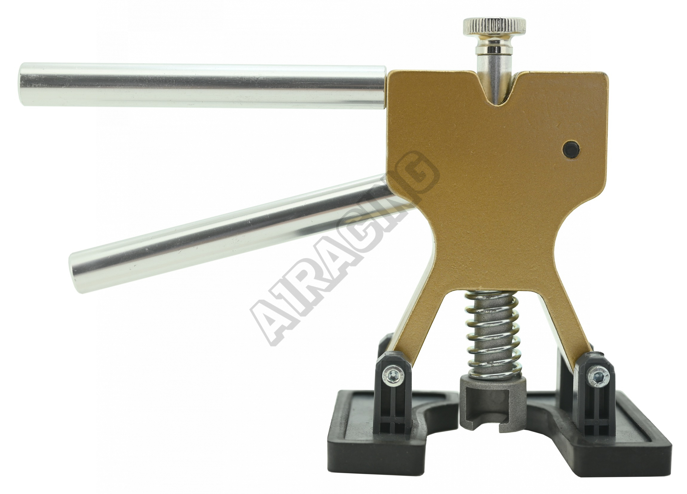 Samotné hliníkové zařízení je opatřeno patkami s gumou. Lze jej tak umístit na jakékoliv místo karoserie, bez rizika poškrábání laku. Vrchní část zařízení je opatřena šroubovacím mechanismem, umožňujícím nastavení výšky čelisti vůči trnu.