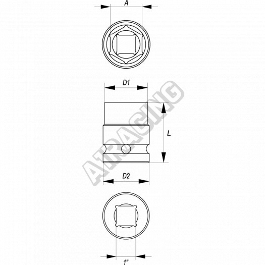 Kovaný ořech s vnitřním šestihraným profilem 33 mm a připojovacím čtyřhranem 1". Je vyroben z kvalitní chrom molybdenové slitiny oceli CrMo SCM440. Profil šestihranu používá speciální úpravu tzv. AS DRIVE, která je významně účinná pro přenos síly pro povolení a zamezuje poničení hlavy šroubu.