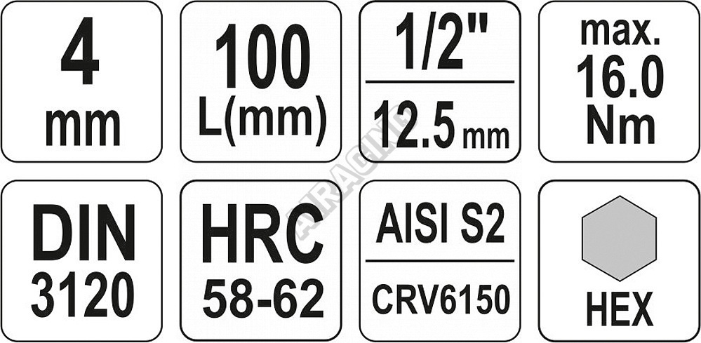 Nástavec je precizně a přesně zhotoven z pochromované oceli CrV6150 a samotný bit z nerezové oceli AISI S2 vrstvené niklem pro vysokou odolnost.