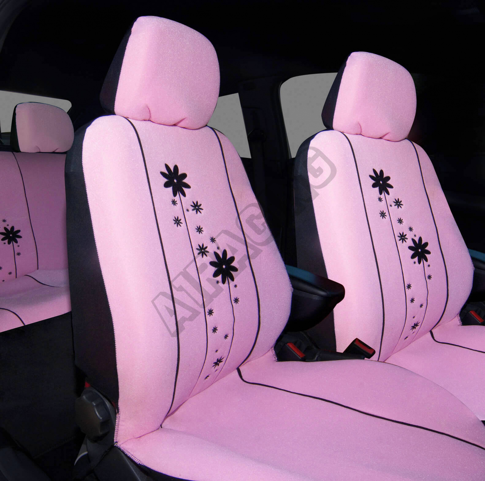 Mikrovláknové autopotahy v růžovém provedení s květinama (zadní část je praktická černá). Díky kompatibilitě s předními bočními airbagy vám umožňuje nadále využívat jejich funkci. Zadní díl je dělitelný podle potřeby z obou stran, jak budete potřebovat u svého modelu auta. Balení obsahuje přední potahy, zadní dělitelný potah + potahy všech opěrek. Díky průžnosti těchto autopotahů jsou použitelné na 99% všech modelů aut.