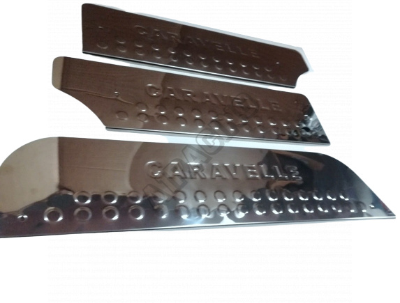 Nerez chrom prahové lišty s nápisem CARAVELLE VW T5, T6 - 100% nerez leštěné provedení - přesně
