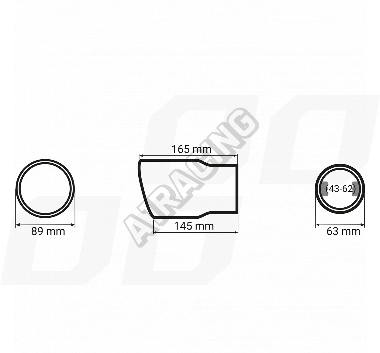- Průměr koncovek: 89 mm